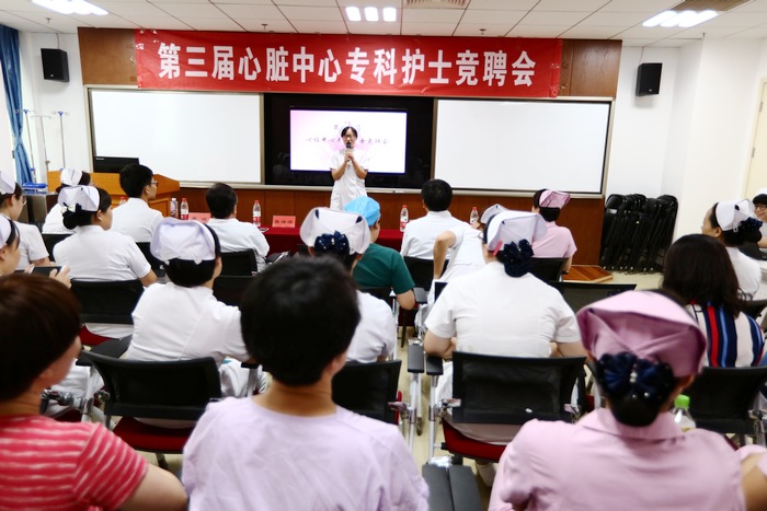 8月18日,在护理部和心脏中心的支持下,第三届心脏中心专科护士竞聘会顺利召开。竞聘会将选拔心脏中心的专业护理人才,提升心内科护士专科护理能力,为护士的职业生涯拓展新的领域。竞聘会由心内科孙婷婷护士长主持,评委团由心内科张海滨主任,甘舜进副主任医师,护理部张喜维主任、吴永霞护士长、李霞护士长和英文评委宋波主治医师组成。