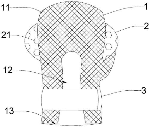 进一步的,在本实用新型的一些实施例中,上述扣带包括魔术贴毛面和魔术贴勾面,上述魔术贴毛面和上述魔术贴勾面分别设置在上述辅助穿戴口两侧。