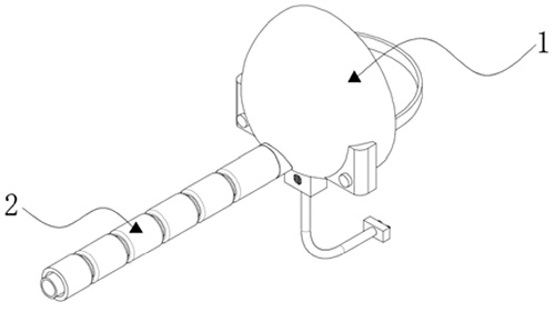 技术功效: [0017]一、本实用新型通过输送管组件外部的保护硬管对弹性气管的保护,使输氧管不会因挤压或弯折而使氧气发生堵塞,降低了此类事故发生的概率。 [0018]二、本实用新型通过面罩贴合人脸设置的加热线圈,可对整个面罩进行一定程度的加热,防止病患呼气而使面罩产生水雾,对病患的鼻、嘴造成不适。
