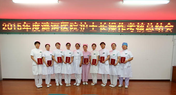 考核现场帮忙的护士不断发出赞叹:“护士长们铺出来的床平整得像镜子一样啊!”最终考核成绩大于90分的护士长为42名,占95.5%,80—90分的护士长2名,占4.5%,合格率100%。护理部为考核成绩前十名的护士长颁发了证书以资鼓励,护士长们以优异的成绩证明了我院护理管理队伍具备较强的业务基础及脚踏实地的工作作风,为全院护士树立了学习的榜样。